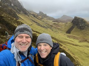 Amazingly and yet not surprisingly, Scott asked me to go on an adventure with him to the Scottish Highlands while his body still could. So, in January of this year when the weather is most foul, we enjoyed God’s wild beauty while also sharing the depths of our souls. The picture I’m sharing is from one of our hikes in blowing wind and rain on the Isle of Sky. It was an experience I’ll always cherish because it touched the depths of the wild joy God longs for us all to experience in this lifetime.